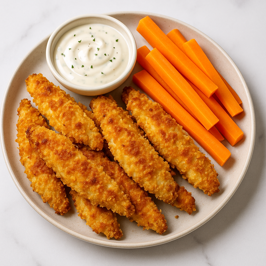 They’re crispy on the outside, tender on the inside, and lightly seasoned so even picky eaters say yes. I usually bake a big batch on Sunday, freeze half, and keep the other half for quick dinners or next-day lunchboxes. Paired with crunchy carrot sticks and a tiny pot of dip, it’s one of those meals that feels balanced, wholesome, and still kid-approved.
